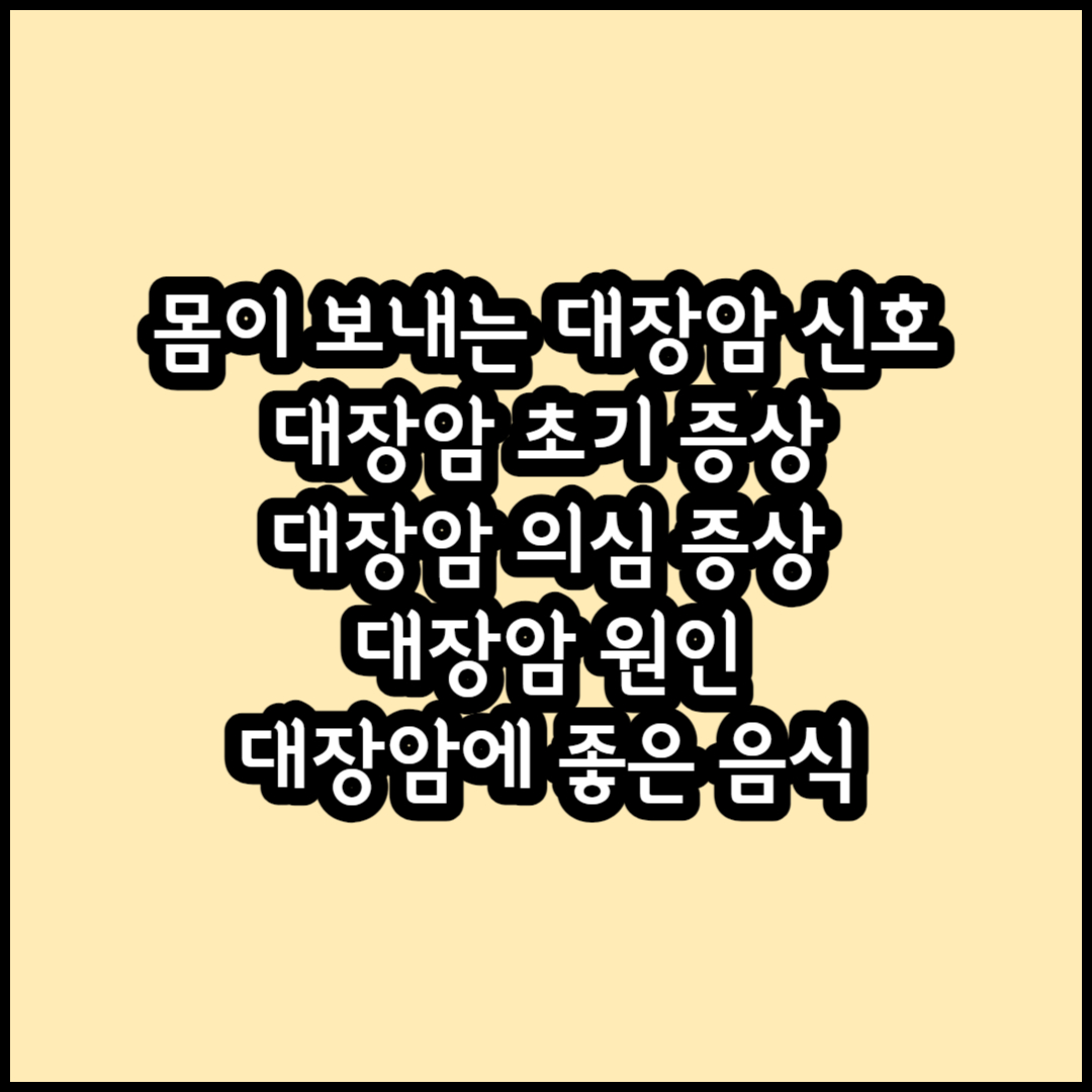 대장암은 기본적으로 무증상입니다. 대장암의 초기 증상은 별다른 자각증상이 없고, 외형적으로도 체중감소, 혈색 등에 변화가 없어 조기 발견이 매우 어렵습니다. 특히 대장암의 주요 증상인 복통, 설사, 혈변 등은 2기 이상 진행된 암에서 나타날 수 있는데, 상당히 진행된 경우에도 증상이 없는 경우가 많습니다. 초기에는 눈에 띄지 않는 장출혈로 인해 빈혈이 발생할 수 있지만, 이러한 증상만으로 대장암을 초기에 구별하기는 쉽지 않습니다.